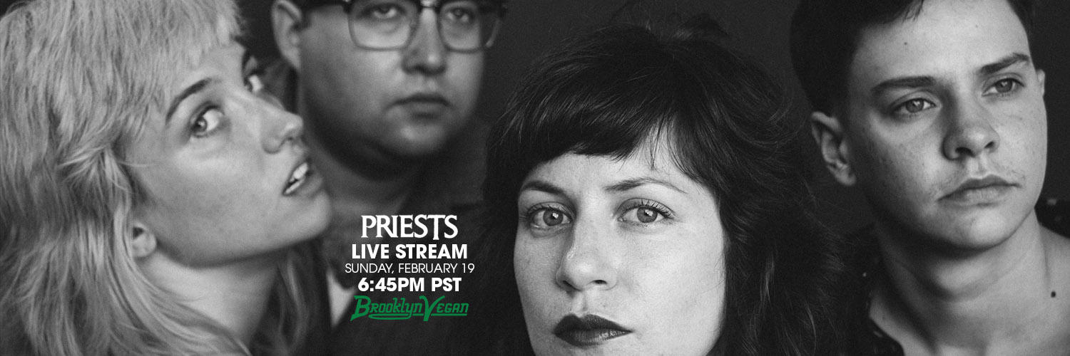 PressureDropTV has partnered with Brooklyn Vegan to present Priests (a Sister Polygon recording artist), this Sunday, February 19, beginning at 6:45pm PDT. To watch the stream, download PressureDropTV's new app from the App Store. Released just today, the app gives users access to live and archived streams at any time from anywhere, as well as customizable notifications for imminent and future streams.